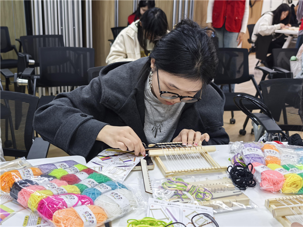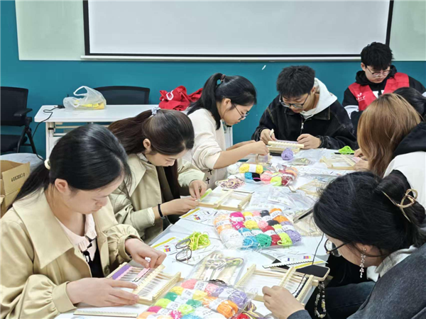 过程中,支部同学纷纷迸发创意,把对精神的感悟、对传承的思考织入经纬,创作出一件件独具特色的主题织造作品。到了后续的互动研讨环节,大家更是畅所欲言 —— 有人分享动手实践的鲜活体会,有人畅谈对纺织精神的深刻理解,这份厚重的传承,也在思想的碰撞与交融中真正落地生根、枝繁叶茂。