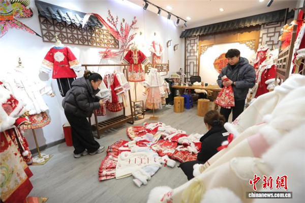 深耕中式童装的“唐家闺秀”品牌负责人沈琪透露,企业通过融合生肖刺绣、流行元素等设计创新,以及工艺标准提升20%-30%,推动销量同比增长三倍。“爆款需排单等待,客户订货积极性高涨。”当地另一品牌“芭拉贝尔”销售经理王梦洁介绍,马面裙搭配新中式上衣成为畅销组合,年服出货占比达70%,日均发货超千件,覆盖全国并辐射韩国、东南亚市场。