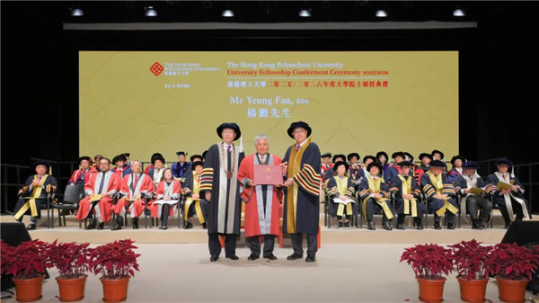 香港理工大学于2026年1月21日举行2025/2026年度大学院士颁授典礼,表彰4位对社会及大学发展作出杰出贡献的领袖人士。其中,旭日集团副董事长兼总经理、香港纺织商会会长杨勋先生,凭借其在企业发展、教育推广及慈善服务方面的卓越成就,获颁大学院士荣衔,成为瞩目焦点。