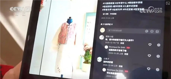 在苏州古城区的这家裁缝铺里,家长正带着小朋友前来选购新春年服。