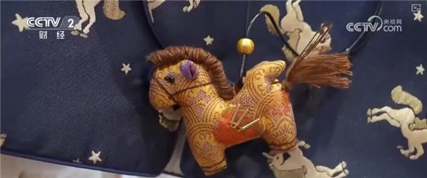 企业负责人张国权介绍,结合真丝、金银丝等各种素材,把它组合在一起。这一款是“马到成功”,还有“龙马精神”“一马当先”。团队设计出来之后,他们经过配色,体现在绸面上,给客户一个丰富的多彩世界。
