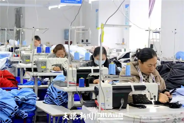 “我在这里工作六七年了,老板对员工很好,工资按时发放。年底订单比较多,经常需要加班,月工资能拿到六七千元,待遇还可以。”工人喻沾飞一边操作缝纫机一边高兴地说。