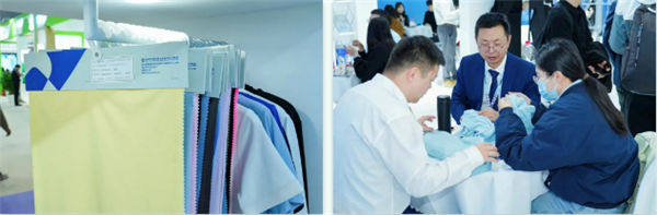 展出温特纶Winterless®保温纤维、稀贝丝®冰逸纤维和稀贝丝®墨暖纤维等差异化产品,运用纳米气凝胶改性、稀土材料复合等创新工艺,赋予纤维智能调温、高效隔热等新功能。