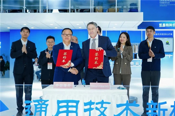 展位现场,合作签约仪式接连举行。3月11日,通用技术新材中纺绿纤携手德国Smartfiber与美国ABW,布局全球高端再生纤维素纤维产业,共同推动Seacell™、Smartcel™海洋驱动型功能性纤维的产业化整合与商业化拓展,助力全球绿色纺织产业升级。3月12日,通用技术新材中纺绿纤与Circulose正式签署合作意向框架协议,双方将围绕再生浆粕供应、莱赛尔纤维生产展开深度合作。此次携手将充分发挥双方技术与资源优势,加速循环可持续原材料的规模化应用,共筑纺织行业绿色低碳循环发展新生态。同日,通用技术新材福建中纺标与浙江青士达成合作协议,双方将开展全链条检测合作,助力破解产业难题,推动竹原纤维产业规范化、标准化、高端化发展。强强联合,以标准筑牢产业发展根基。