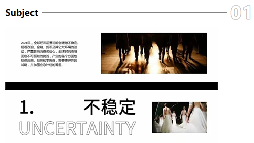 2024年,全球经济前景可能会继续不稳定。随着政治、金融、货币及其它大环境的波动影响消费者信心,全球时尚市场面临不可预知的挑战,产业的各个方面包括供应商、品牌和零售商,需要更弹性的战略,并加强应急计划的筹备。