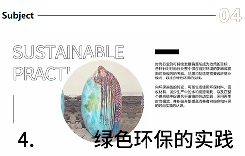时尚行业的可持续发展将逐渐成为政策的目标 , 时尚行业整个供应链对环境的影响或将面对新规则的考验。品牌和制造商需要改进商业模式 ,以适应绿色环保的实践。向环保实践的转变 ,可能包括使用环保材料、回收材料、减少生产中的水和能源消耗 ,以及在整个供应链中促进合乎道德的劳动实践 ,采用再生时尚模式 ,并积极开始提高消费者对绿色和环保的时尚实践的认识。