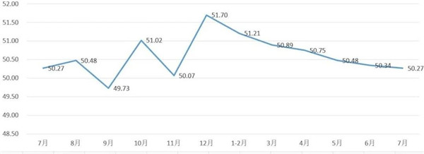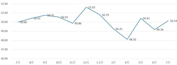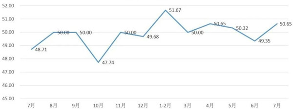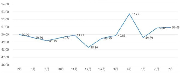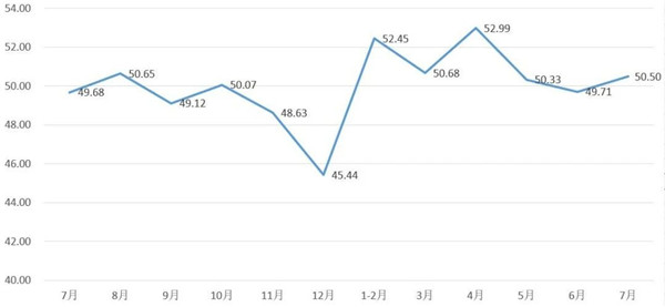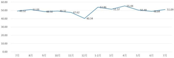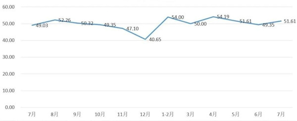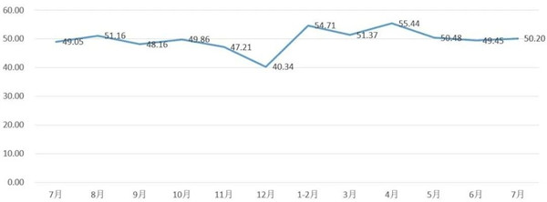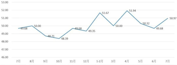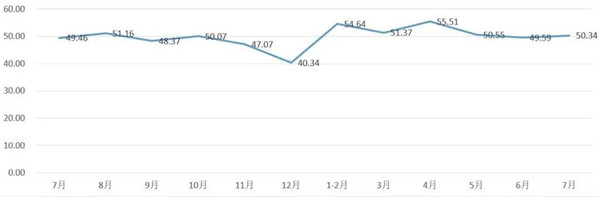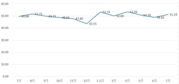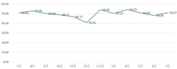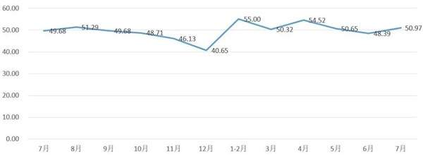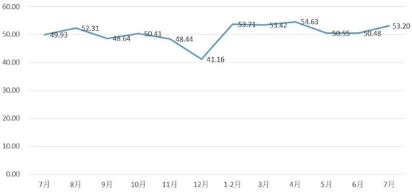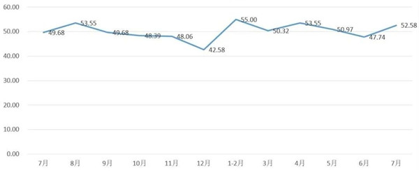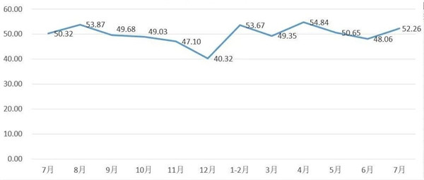 从管理者景气指数来看,总指数中,7月管理者景气指数为51.24,比6月的48.82上升2.42个百分点;经营环境指数为52.58,比6月的47.74上升4.84个百分点。