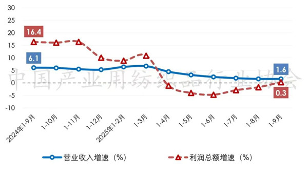 表1 2025年1-9月我国产业用纺织品行业主要经济指标情况(规模以上)