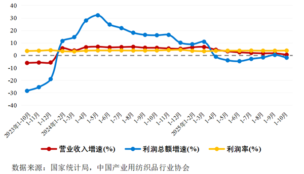 2025年1-10月产业用纺织品行业主要经济指标增速