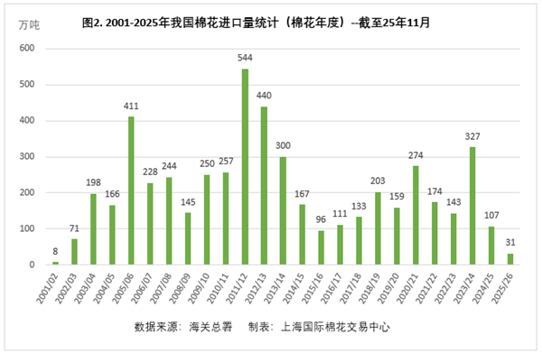 海关总署12月18日公布的数据显示,中国2025年11月棉花进口量为12万吨,同比增长9.4%。中国1-11月累计进口棉花89万吨,同比减少64%。