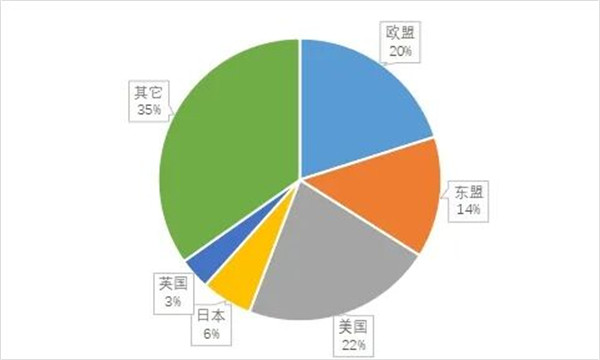 2025年毛纺原料与制品出口国家与地区出口额分布情况