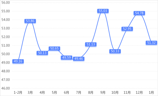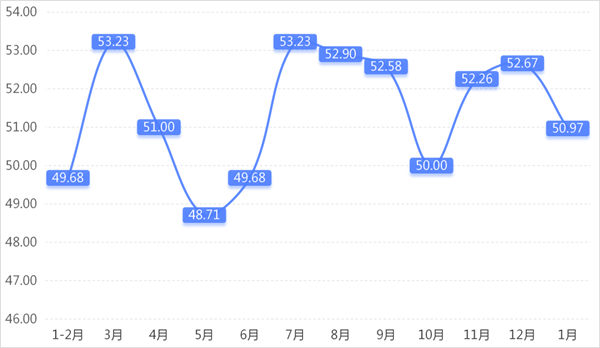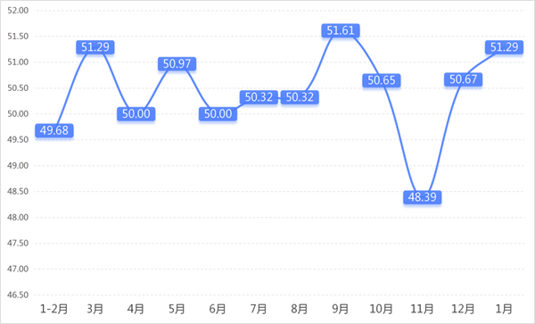 从管理者景气指数来看,总指数中,1月管理者景气指数为52.58,较上期上升0.41个百分点;经营环境指数为51.29,较上期下降1.04个百分点。