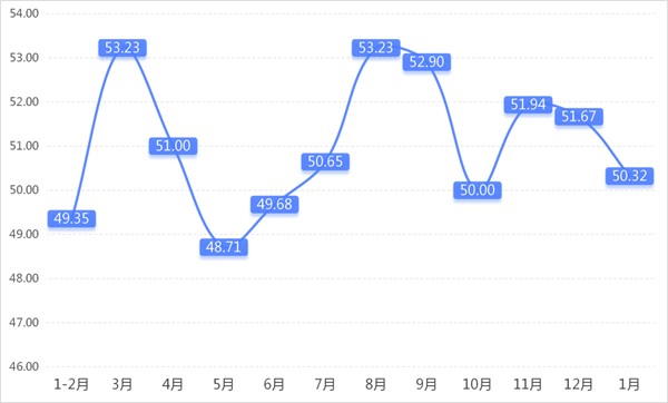 从商户景气指数来看,总指数中,1月商户景气指数为50.82,较上期下降1.22个百分点;经营环境指数为51.84,较上期下降2.65个百分点。