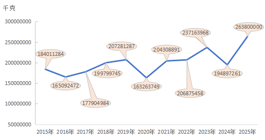 图3 2015~2025年中国亚麻纤维进口数量统计