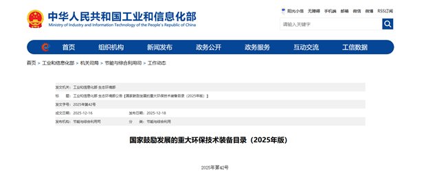 为落实《促进环保装备制造业高质量发展的若干意见》(工信部联节〔2025〕49号)工作部署,加快先进环保技术装备研发和推广应用,工业和信息化部、生态环境部编制了《国家鼓励发展的重大环保技术装备目录(2025年版)》,现予公告。《国家鼓励发展的重大环保技术装备目录(2023年版)》同时废止。