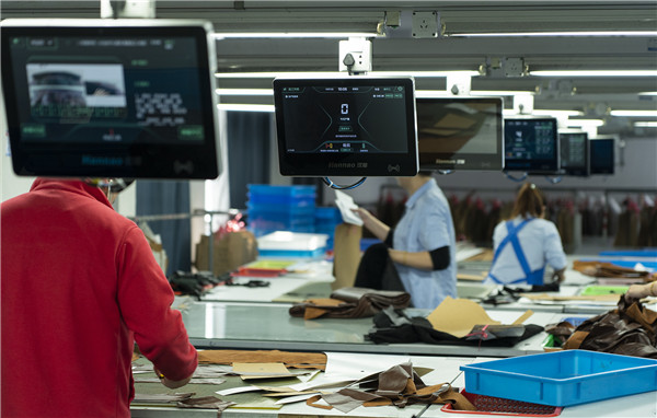 在雪豹服饰的生产车间内,记者看到,每一位工人的工位前,都有一个小型的显示器。这些显示器起到什么作用呢?