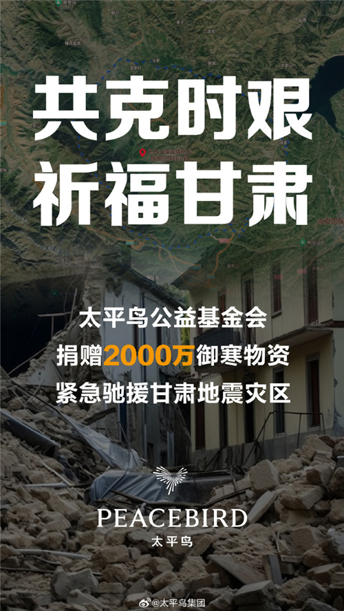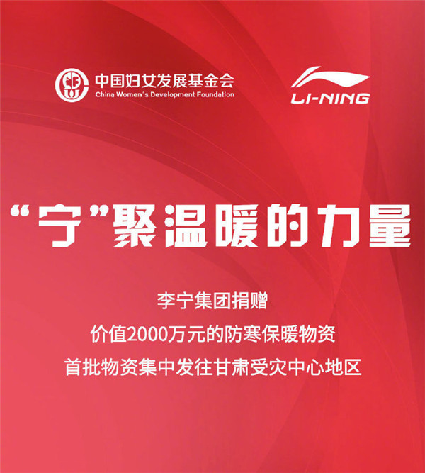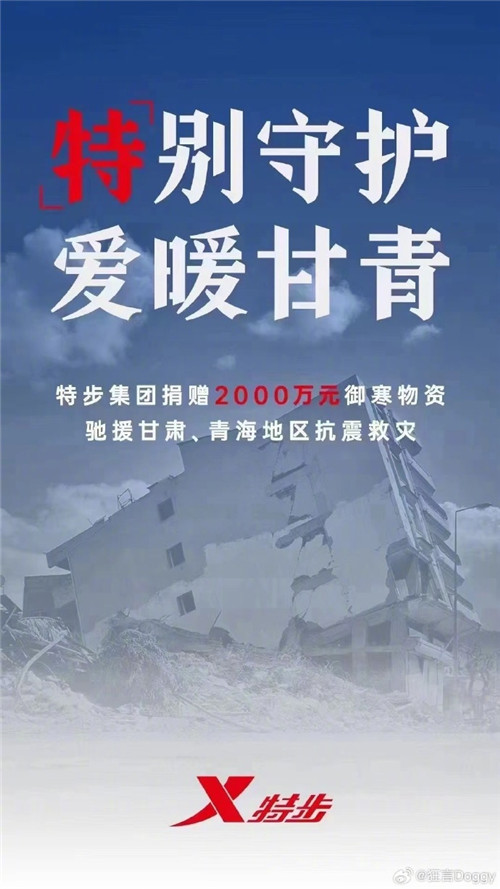 特步集团捐赠2000万元御寒物资驰援甘肃、青海地区抗震救灾。