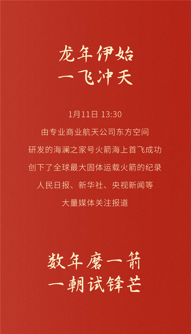 2024年1月11日13点30分,山东海阳附近的海域上空,一声轰鸣震撼了天际,由中国服装协会副会长单位——海澜集团旗下海澜之家独家冠名的“引力一号”(遥一)运载火箭,如一条巨龙腾空而起,携带着云遥一号18-20星共3颗卫星,精确地送入预定轨道。这一刻,不仅创造了全球最大固体运载火箭的壮举,更刷新了中国运力最大民商火箭的辉煌纪录。