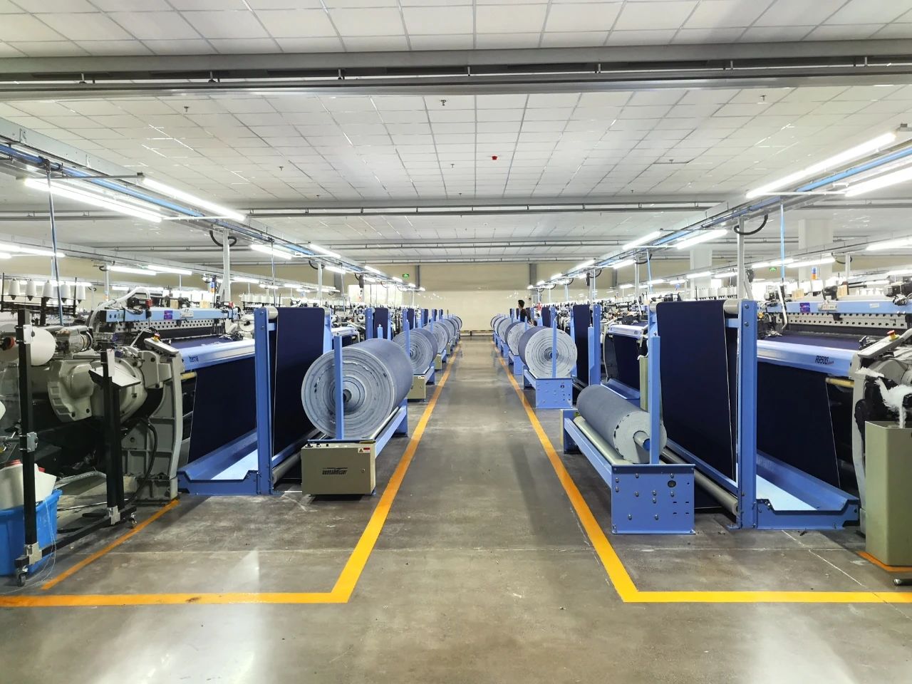 在主场工序,映入眼帘的是一片井然有序又充满科技感的繁忙景象。只见那一排排先进的织布机整齐排列,它们就像训练有素的士兵,精准地执行着各自的任务,有节奏的传递蓝色的多瑙河之光。