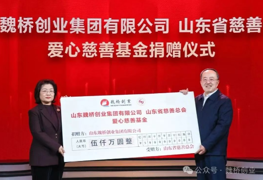 11月24日,魏桥创业集团向山东省慈善总会捐赠5000万元,设立“山东省慈善总会魏桥创业集团爱心慈善基金”。该基金将专项用于助困、助学、助残、应急救助等公益慈善领域,积极助力乡村振兴,弘扬慈善文化,是魏桥创业集团践行“为国创业,为民造福”企业核心价值观的又一重要实践。