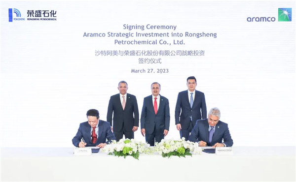 2023年3月27日,荣盛与沙特阿美达成协议,沙特阿美通过其全资子公司阿美海外公司以246亿元人民币(约合34亿美元)收购荣盛石化10%的股权。此次合作内容涵盖技术共享、原油供应、采购授信额度和原油仓储合作等多个方面。原油供应方面,沙特阿美承诺每日向浙石化供应不少于48万桶高品质原油,确保生产的稳定性。“一滴油化万物”的“油”算是有了更为稳定的保障,荣盛全产业链布局的拼图由此更加完整。
